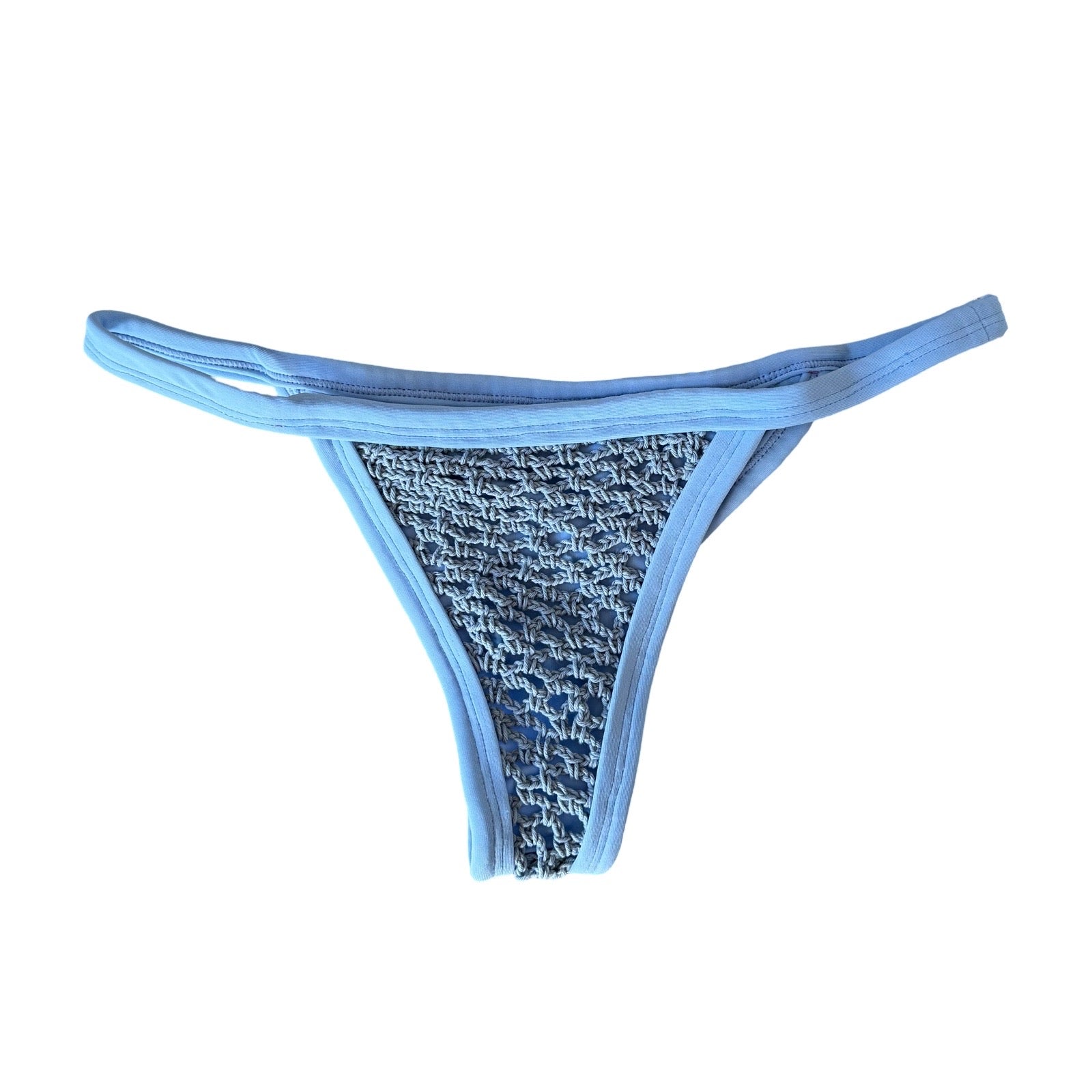 Minimal coverage bottom. Mid/low cut. Cotton crochet over Italian lycra.