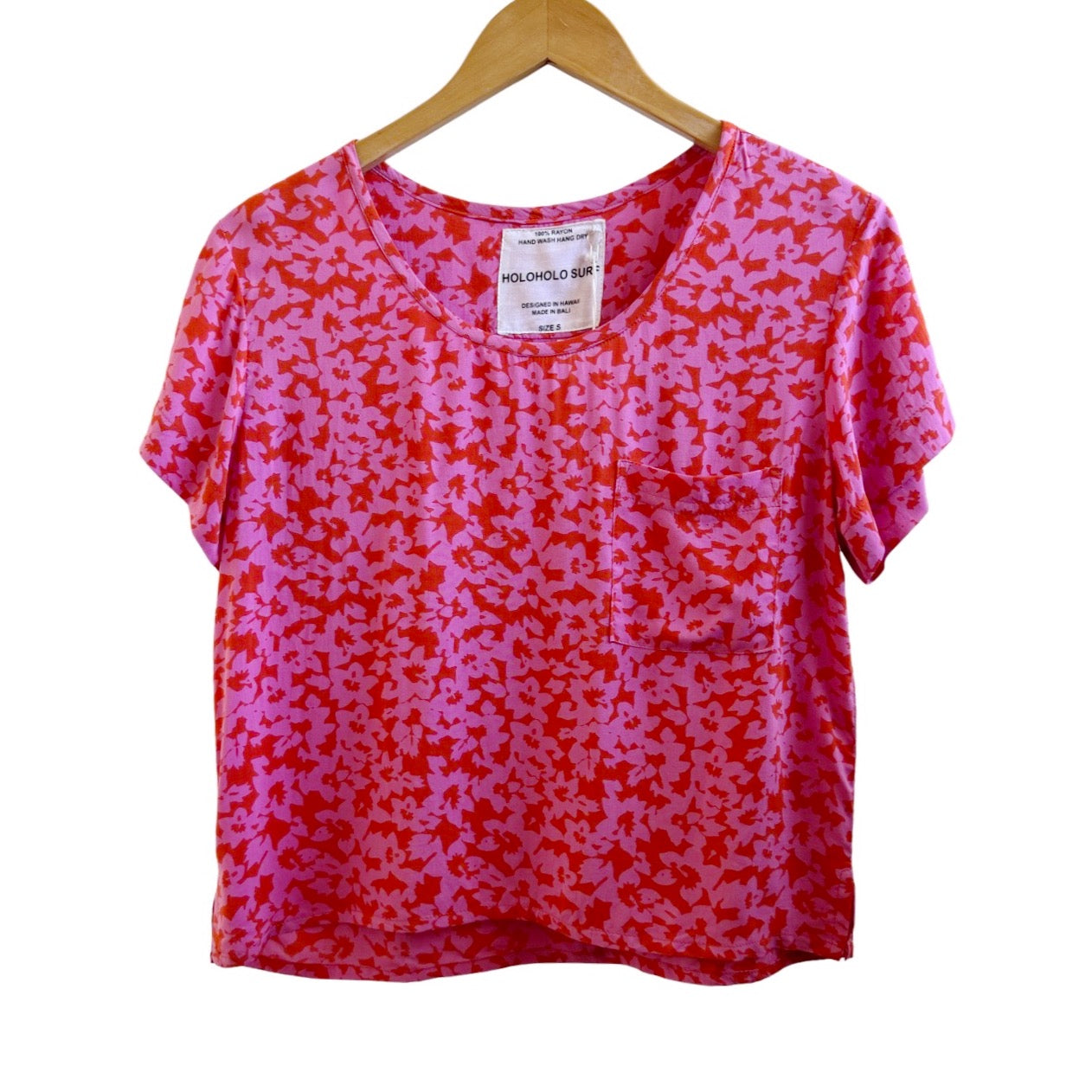 Cropped pocket tee. 100% rayon chiffon